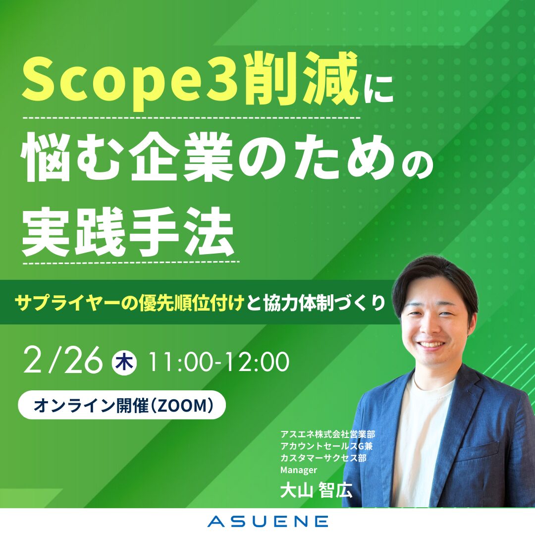 CO2排出量見える化・削減・報告クラウドサービスアスエネは、CO2排出量見える化・削減・報告クラウドサービスです。 温室効果ガス・CO2排出量の算出・可視化、削減・カーボンオフセット、Scope1-3のサプライチェーン全体の報告・情報開示を支援します。