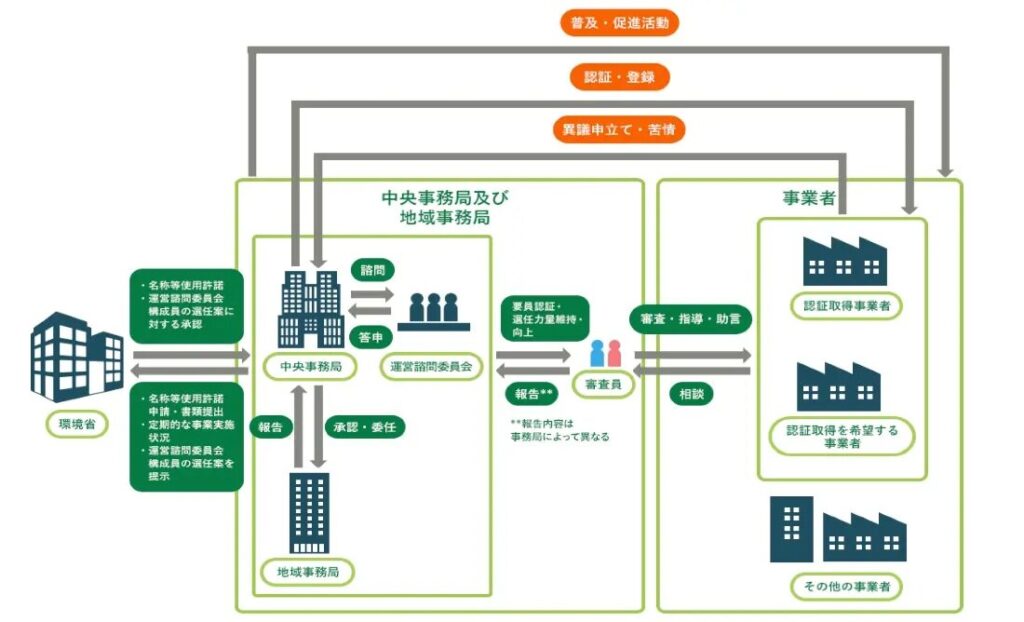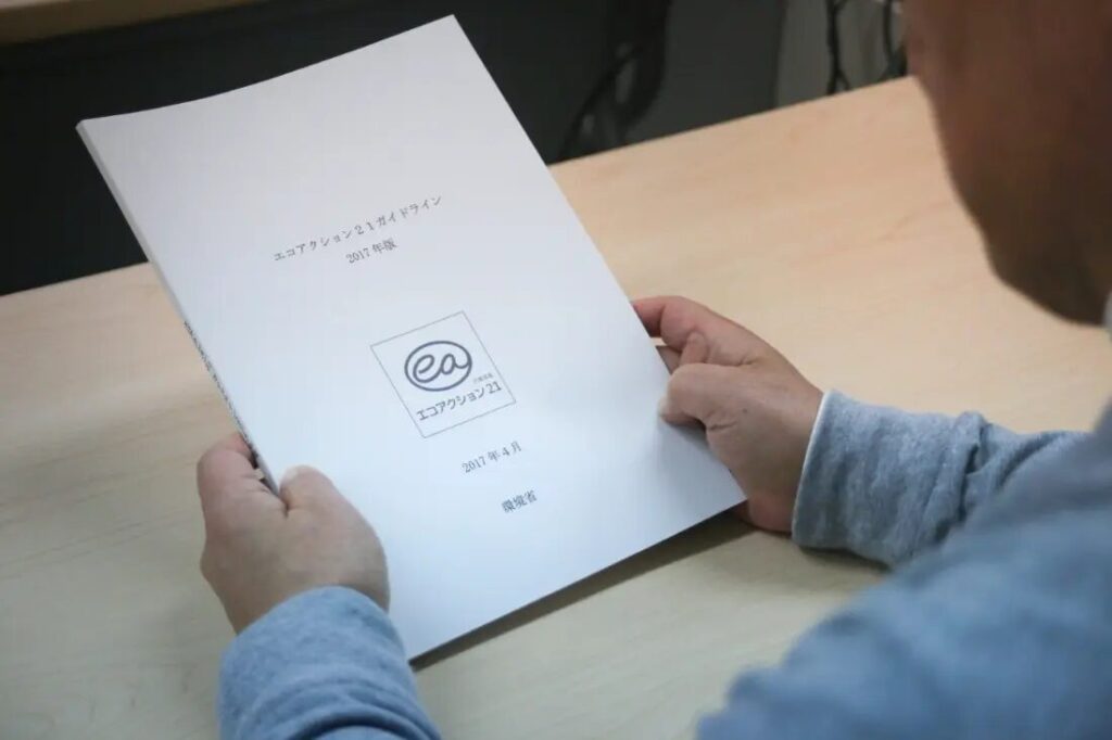 1つ目の「環境経営の普及」、とりわけ中小企業に向けた環境マネジメントシステム「エコアクション21」の全国的な普及・定着を目指し、中小企業の価値の向上を支援することがメインの事業になります。日本における環境マネジメントシステムには、「エコアクション21」の他にISO14001があります。ISO14001は、環境マネジメントシステムの仕様を定めた国際的な認証規格で、1990年代以降、主に大企業が取得してきたものです。しかし、日本企業の99.8%は中小企業です。多くの中小企業の経営者は、環境経営が欠かせないとは理解していても、何から始めれば良いのかわからず、ISO14001取得のハードルも高いため、取り組めていないという問題がありました。そこで環境省が、中小事業者でも取り組みやすい日本独自の環境マネジメントシステムの仕組みとして策定したガイドラインが、「エコアクション21」です。2004年に策定され、2009年、2017年とガイドラインが改訂されてきました。当機構は、この認証・登録制度の運営事務局として、環境経営を推進しています。