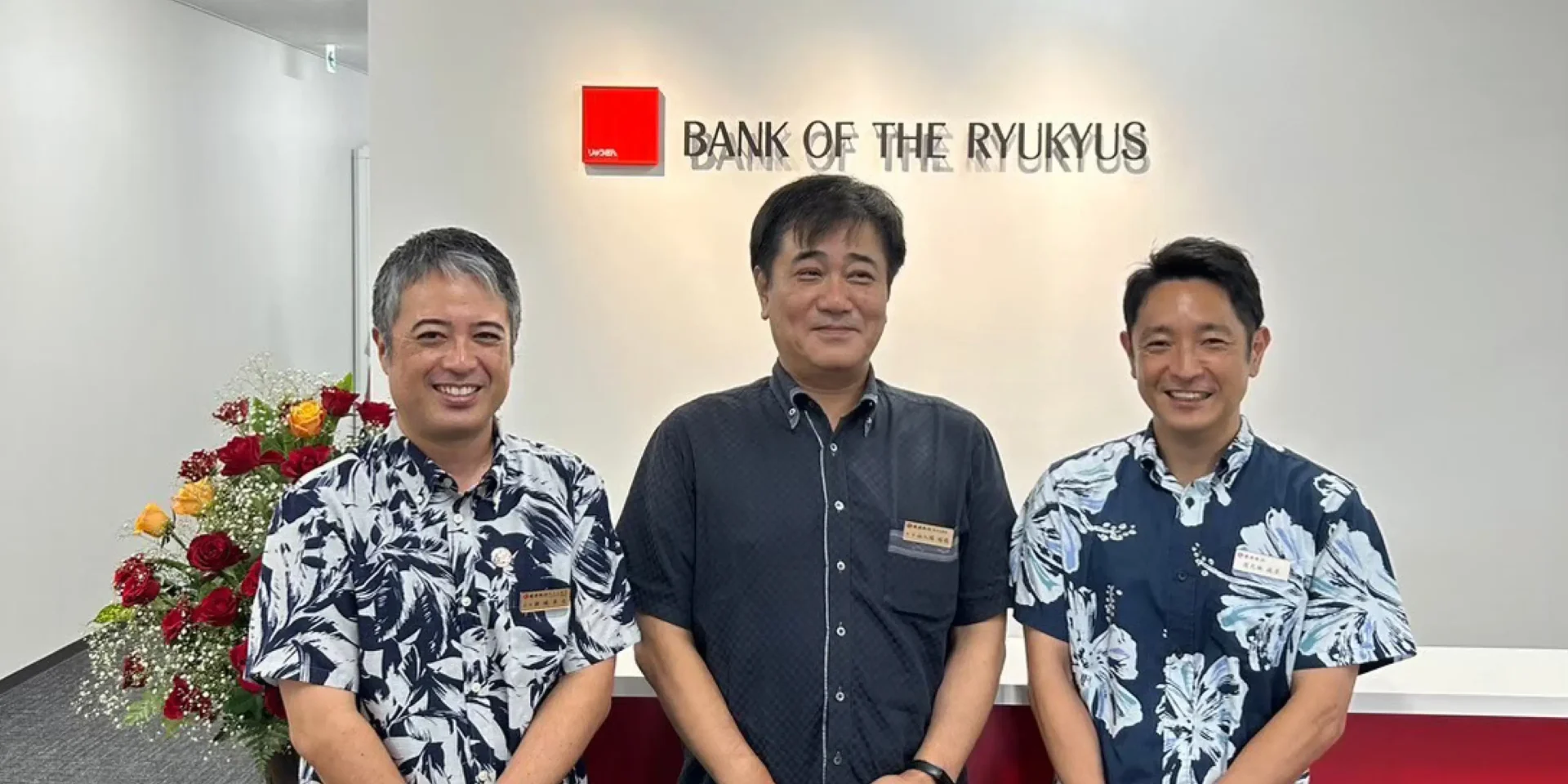 総合企画部 サステナビリティ推進室 室長 新城さま、(中)総合企画部 部長 山入端さま、(右)総合企画部 サステナビリティ推進室 上席調査役 渡久地さま