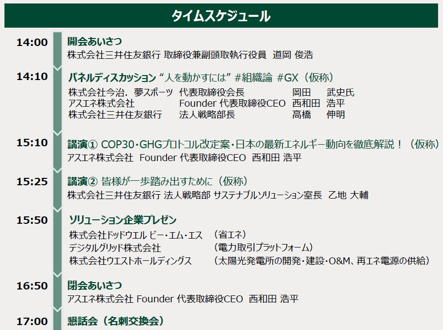 - 当日の写真や内容は後日、アスエネのWEBサイト(https://asuene.com/)]
