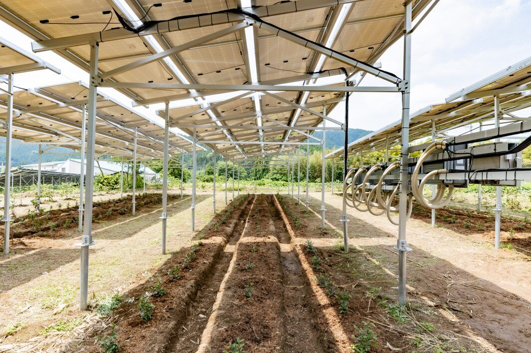 ソーラーシェアリングについては、福島県を中心に約150カ所で認定農業法人を通じて事業を展開しています。サカキ、ブルーベリー、ジャガイモなどの作物を栽培し、地域の雇用創出にも貢献しています。荒れた土地や使えなかった土地を再生して作物を生産できる状態にする。世の中の「もったいない」を再資産化していこうという考えです。