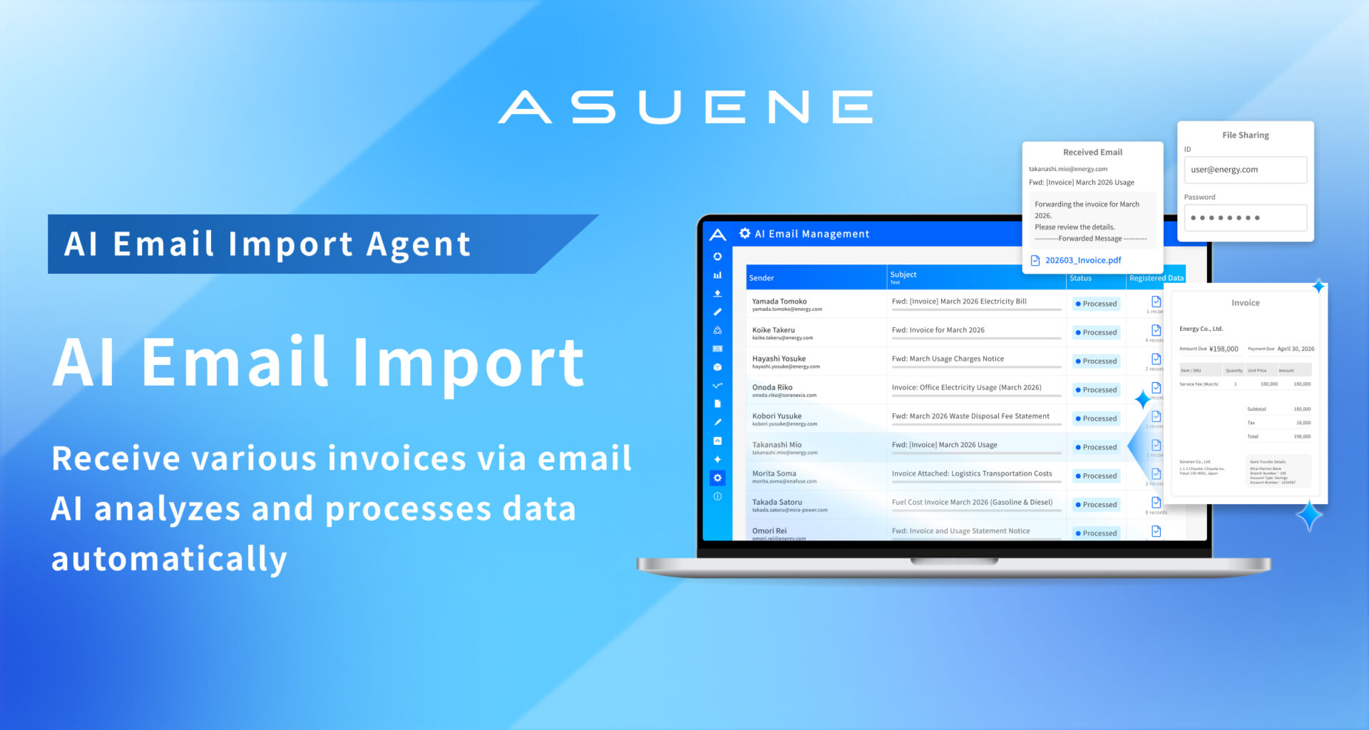ASUENE, to automatically retrieve necessary information from invoices received via email and