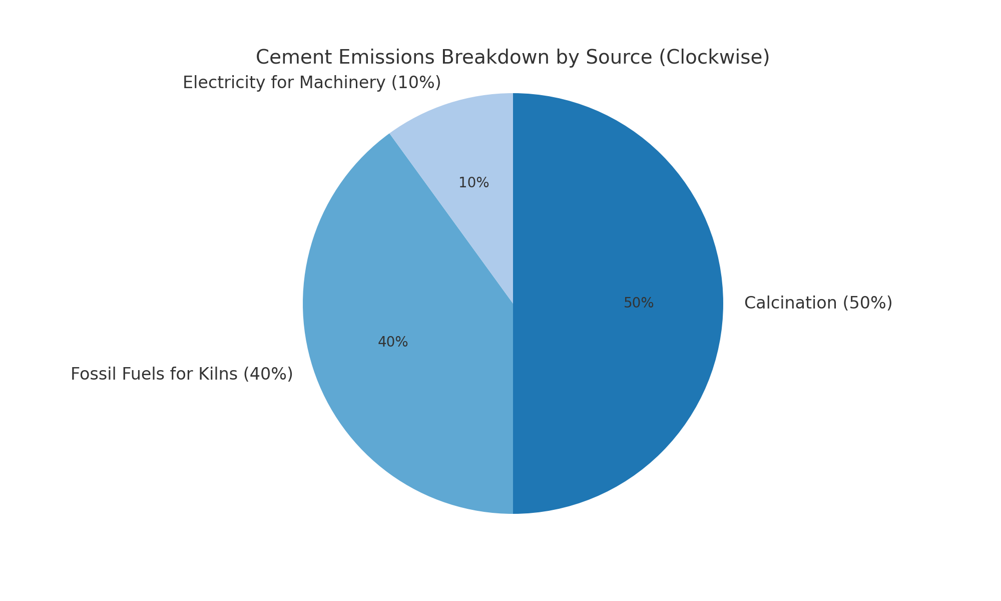Cement production is one of the most complex industrial processes to decarbonize. Around 50% of its emissions come from the chemical reactions involved in converting limestone into clinker, while about 40% arise from the combustion of fuels to heat the kilns. 10% are from electricity to power additional machinery. The sector’s dependency on high temperatures and carbon-intensive materials makes deep decarbonization difficult.