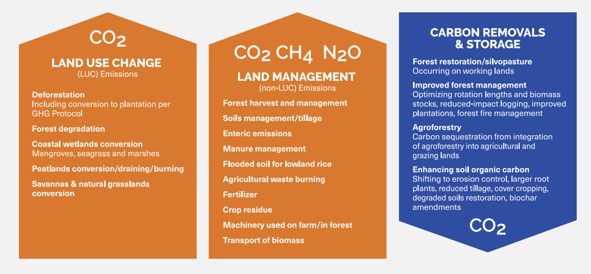 - Land and agriculture activities account for approximately 22% of global greenhouse gas emissions (IPCC, 2022). New rules require companies in affected sectors to set targets for this portion of their emissions separately from their energy and operations targets. Companies in six designated sectors including food production and forest products are required to act.