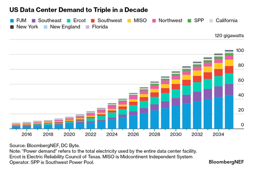 The long period of stagnant US electricity demand was the result of several reinforcing trends, including improved appliance efficiency, slower industrial growth, and the offshoring of energy-intensive manufacturing. These conditions allowed utilities and policymakers to plan for a stable load environment. Recent projections show a decisive break from this pattern. Electricity demand is now expected to rise steadily through the 2030s as new sources of load come online. Unlike past demand growth driven by population increases, this surge is concentrated in specific sectors and regions, creating localized stress on generation and transmission infrastructure. The return of demand growth fundamentally alters the assumptions underlying power system planning, investment timelines, and climate strategy.